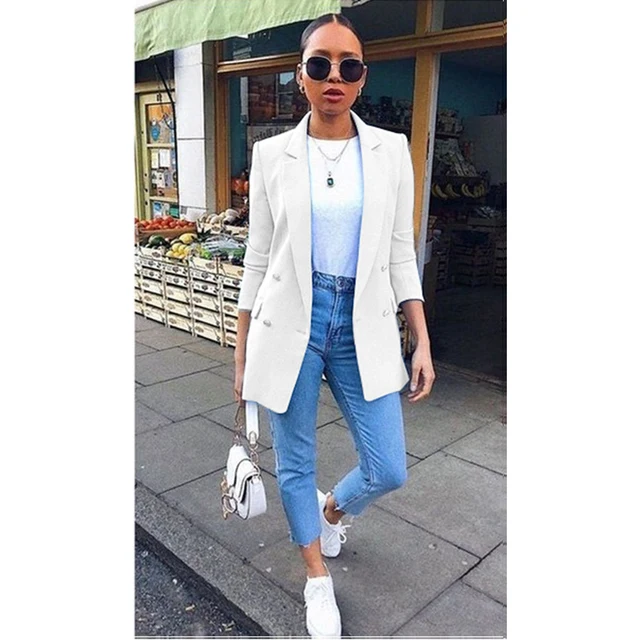21 Apparel Autumn Chic White Long Suit Blazer Women Double Breasted Ladies Blazers 16 Winter Coat Jacket Office Outwear From Dongtoujiuxian 57 62 Dhgate Com