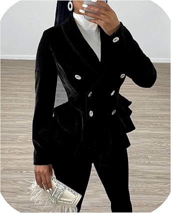 Double Breasted Velvet Ruffle Blazer Workwear Women Long Sleeve Elegant Blazers Black Only Coat L At Amazon Women S Clothing Store