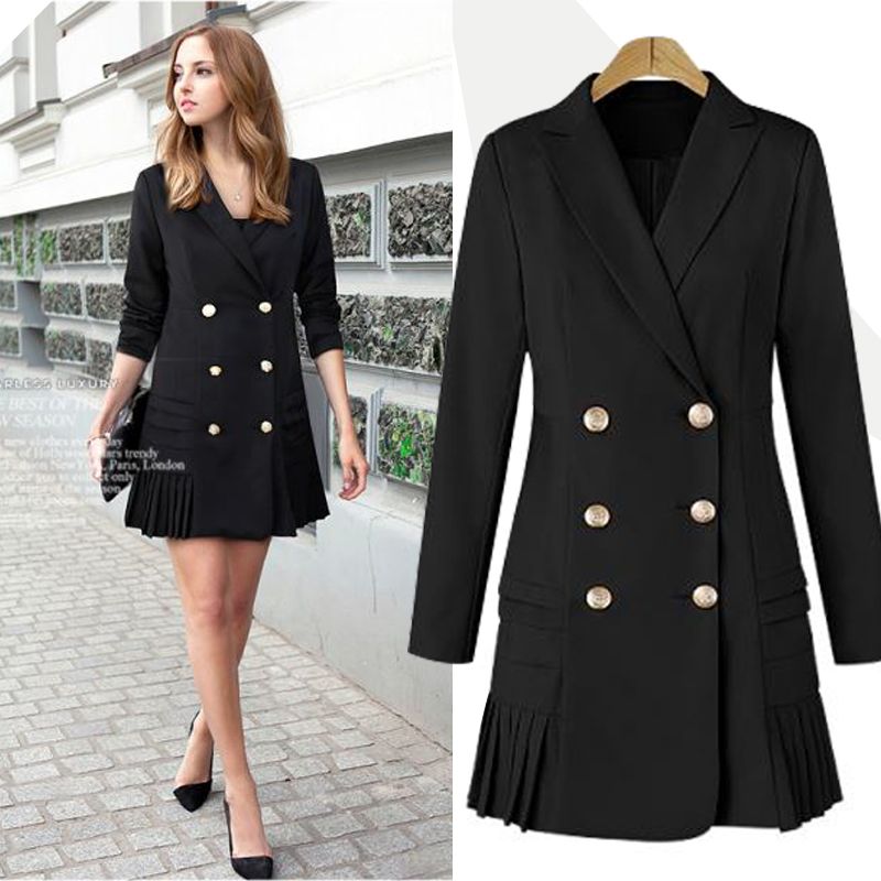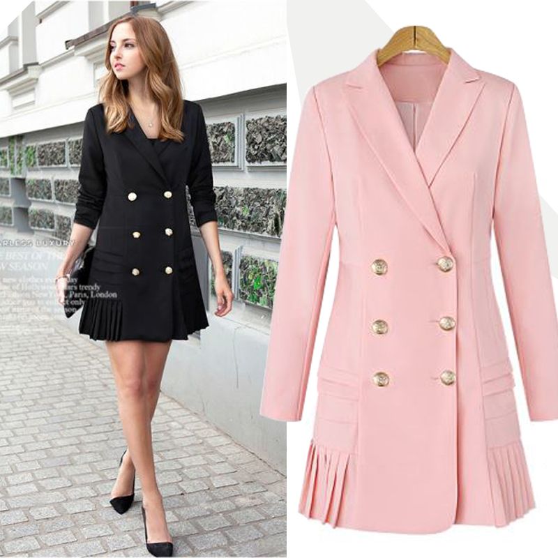 21 Double Breasted Women Blazers And Jackets 17 Autumn Pleated Long Suit Coat Women Outwear Blazer Feminino Plus Size E0221 From Southd 51 3 Dhgate Com