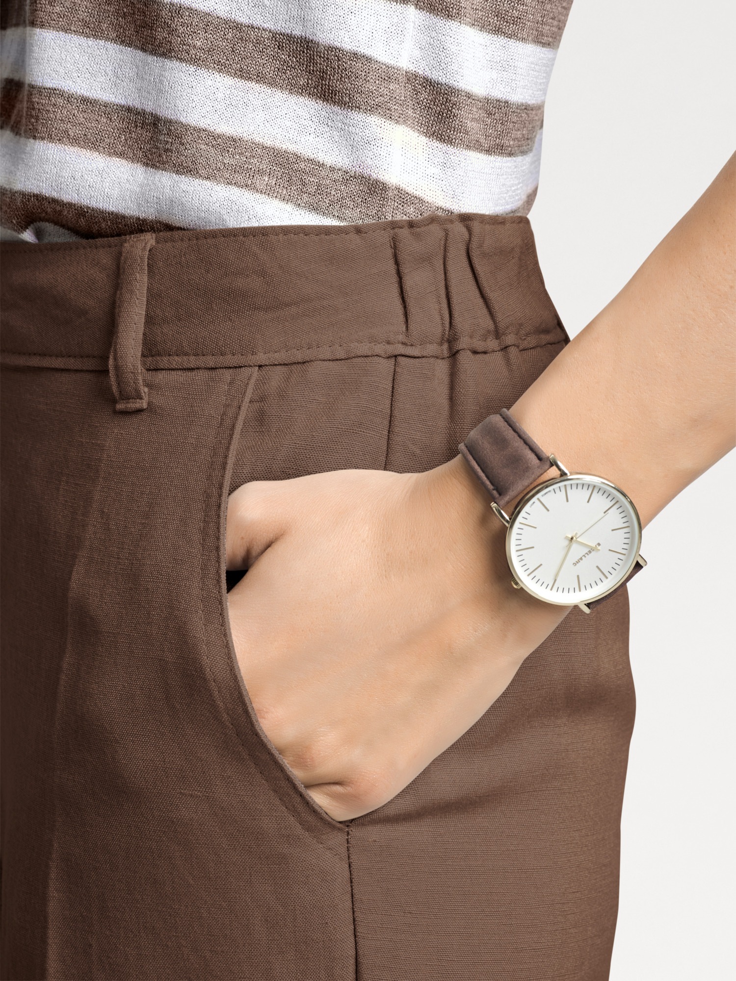 Damen Hosen Aus Spitze Leinenhose Taupe Schlamm Schlupfhose Gummibund 36 44 Weites Bein Taschen D Omnia Ae