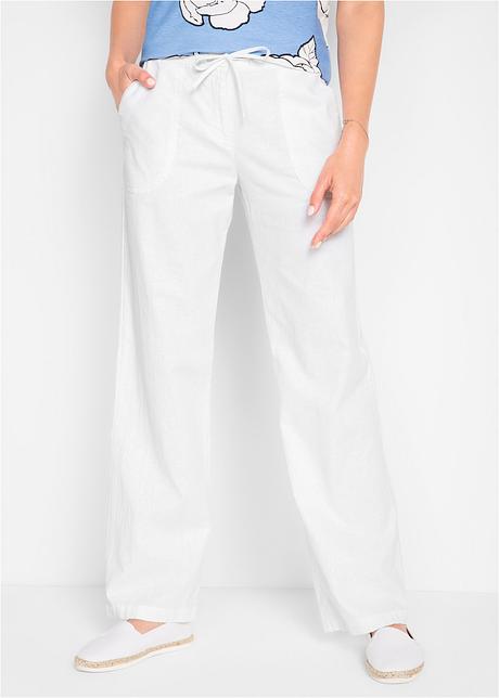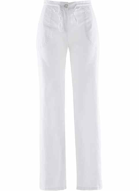 Komfortable Leinenhose In Weitem Schnitt Mit Kordelzug Weiss