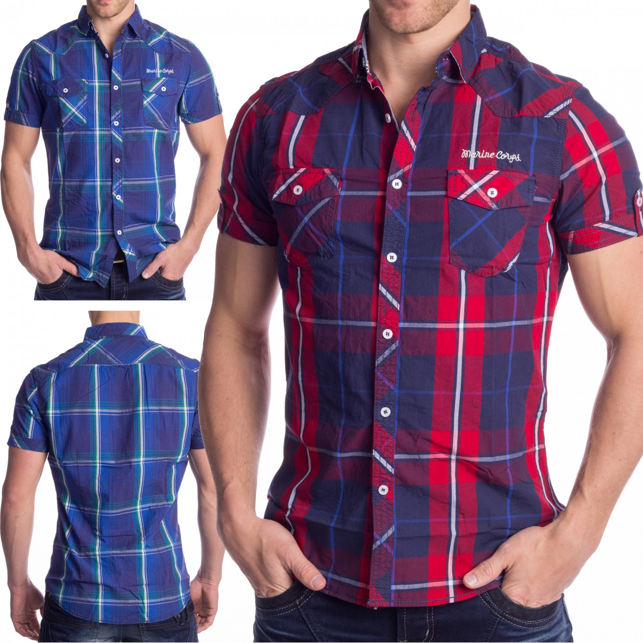 Herren Kurzarm Hemd Rot Blau Kariert Marine T Shirt Polo Shirt 100 Baumwolle Ebay