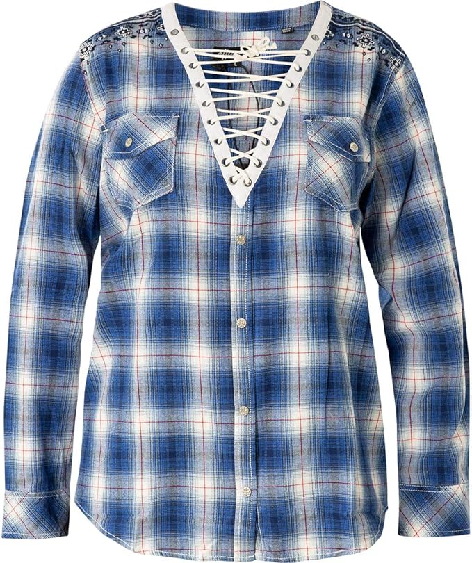 Affliction Damen Hemd Crystal Vision Blau Amazon De Bekleidung