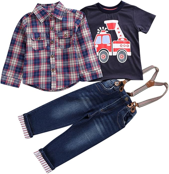 Le Ssara Jungs Cool Langarmliges Kariertes Hemd T Shirt Overalls 3pcs Outfits Amazon De Bekleidung