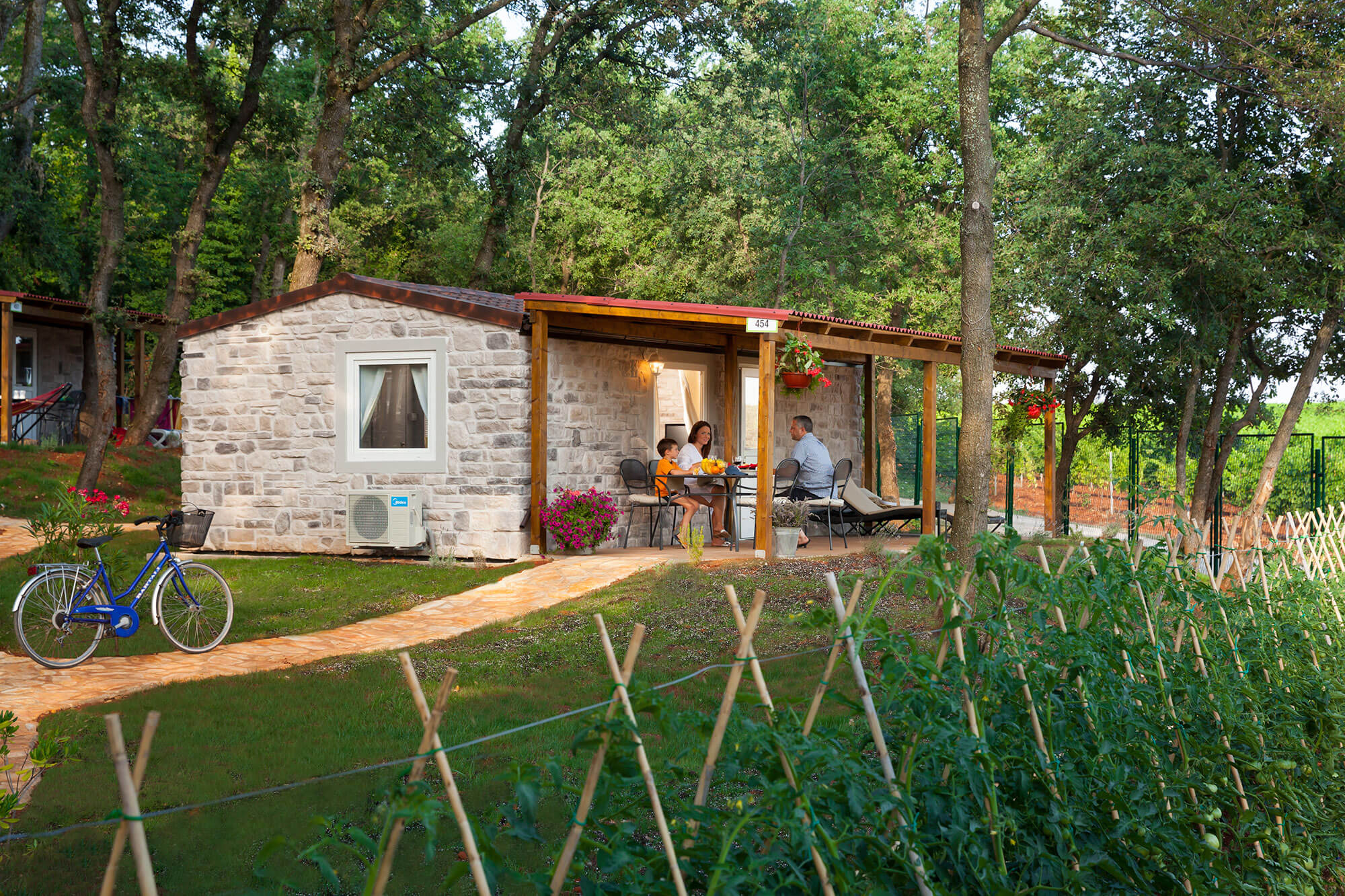 Sunflower Camping 23 fully equipped comfortable handmade wooden glamping tents are located on two campsites on the western coast of Istria Here you will sleep between the trees and you will be woken up by the murmur of the sea and singing of the birds.