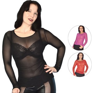Dasongff Damen Langarm Shirt Transparent Tull Mesh Bluse Body T Shirt Tunika Tops Leichtes Oberteile Multicolor Amazon De Bekleidung