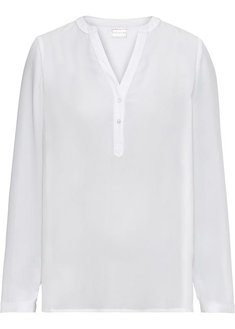 Leicht Durchsichtige Bluse Mit Henley Kragen Und V Ausschnitt Weiss