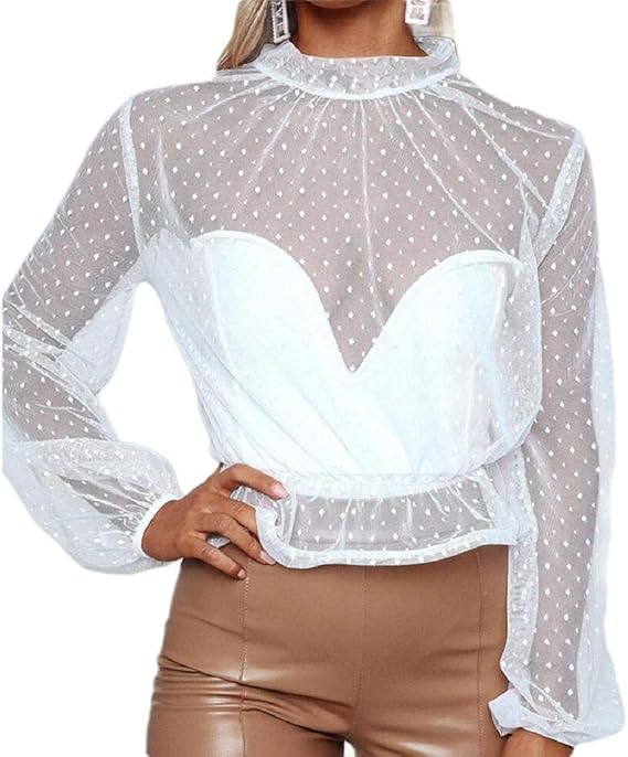 Damen Durchsichtig Netz Langarmlig Bluse Gepunktet Oberteile Hemd Party Blusen Hemden Aliexpress