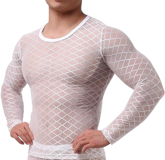 Herren Transparent Weiss Langarm Tank Top Shirt Nachtwasche Manner Reizvoll Unterwasche Slim Muscle Shirt Nylon Hemd Sexy Unterwasche Herren Unterhemd Mesh Top Durchsichtiges Oberteil Amazon De Bekleidung