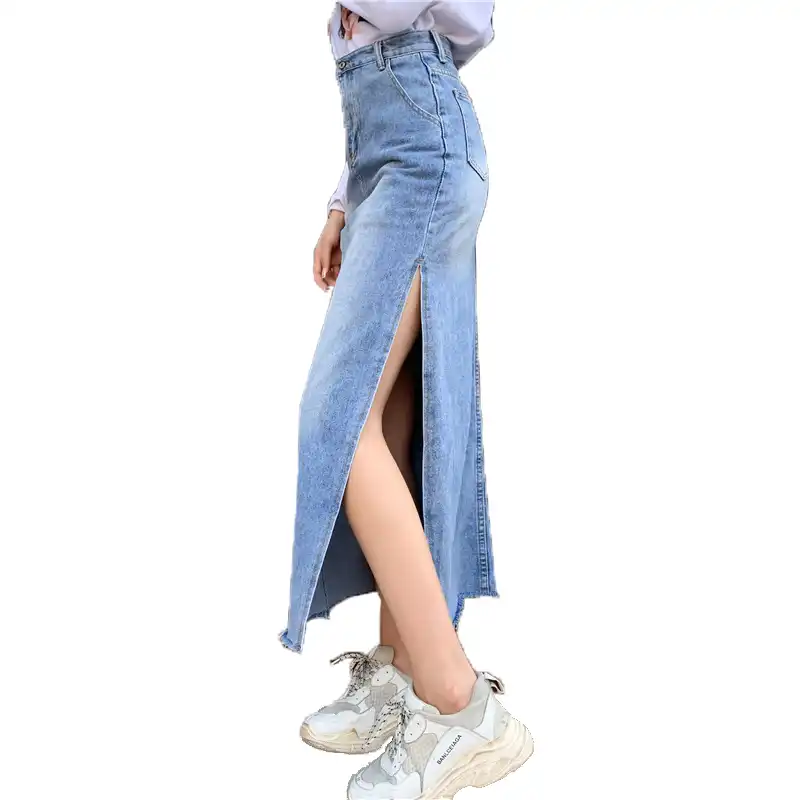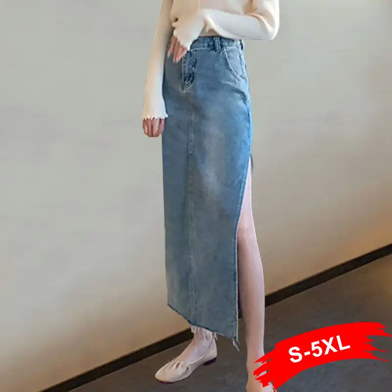 Stilvolle Sommer Lange Jeans Rocke Fur Frauen Hohe Taille Seite Split Denim Rocke Plus Grosse Koreanische Maxi Rock Weibliche Jupe Femme Rocke Aliexpress