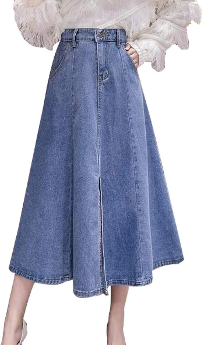 Xhssf Jeansrock Jeans Lange Rocke Retro Mittel Und Lang Hohe Taille Und Grosses Pendel A Formigen Langen Rock Frau Hellblau 2xl Amazon De Bekleidung