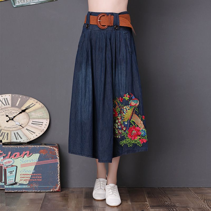 Grosshandel Mode Rock Lange Sommer Jeans Rocke Bestickte Frauen Denim Rocke Gurtel Hohe Taille Grosse Grosse 4xl 5xl Faltenrock Von Tomwei 23 24 Auf De Dhgate Com Dhgate