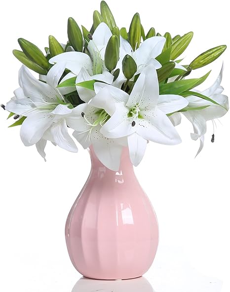 Veryhome 5 Stuck Kunstliche Lilie Gefalschte Blumen Hochzeit Brautstrauss Real Touch Dekoration Home Party Buro Zimmerpflanzen Weiss Amazon De Kuche Haushalt