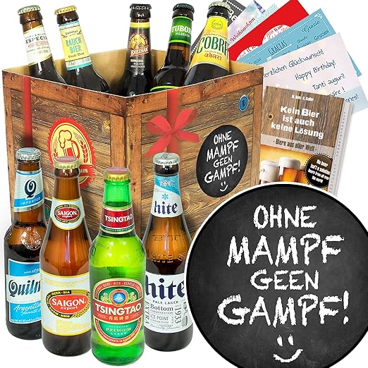 Ohne Mampf Geen Gampf Bierbox Mit Bieren Der Welt Lustige Spruche Mit Geschenk Amazon De Bier Wein Spirituosen