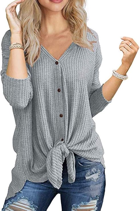 Halife Damen Tunika Waffelstrick Lange Armel V Ausschnitt Knopfleiste Oberteil Mit Schnurung Vorne Amazon De Bekleidung