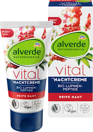 Die escreme von Alverde enthält hochwertige Inhaltsstoffe wie Kakao und Sheabutter, Gojibeere, Hyaluronsäure, Coenzym Q10 und Vitamin E Sie schützt und pflegt die Haut, wirkt glättend und verbessert die Spannkraft Die Creme ist für die Haut ab 30 gedacht, die bereits etwas mehr Pflege benötigt Anwendung. Nachtcreme für reife Haut Gerade reife Haut braucht spezielle Unterstützung bei der Vorbeugung von Zellalterung und Fältchenbildung Eine reichhaltige Nachtcreme kann während des Schlafes besonders lange einwirken und unterstützt die Regeneration der Haut massiv Die Selbstregeneration wird angekurbelt und spezielle Inhaltsstoffe wirken. Vital Nachtcreme von Alverde Vital Nachtcreme Lupinen Peptide Für Reife Haut Naturkosmetik.