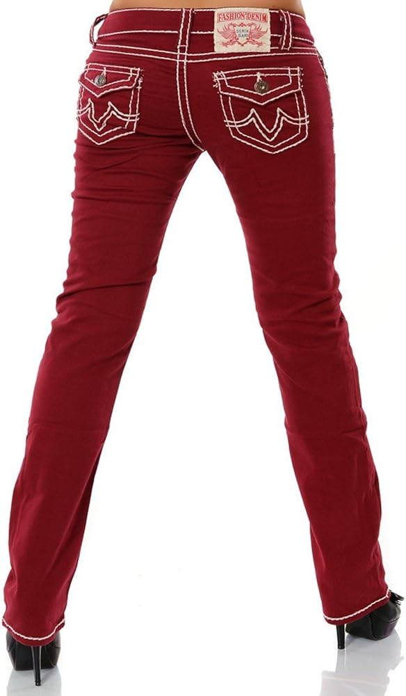 Jeanshosen Damen Jeans Hose Straight Leg Gerades Bein Dicke Naht Da Bekleidung