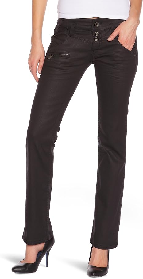 Freeman T Porter Damen Jeans 422 Amelie Stretch Denim 12 32 Black L32 Straight Fit Gerades Bein Hoher Bund Amazon De Bekleidung