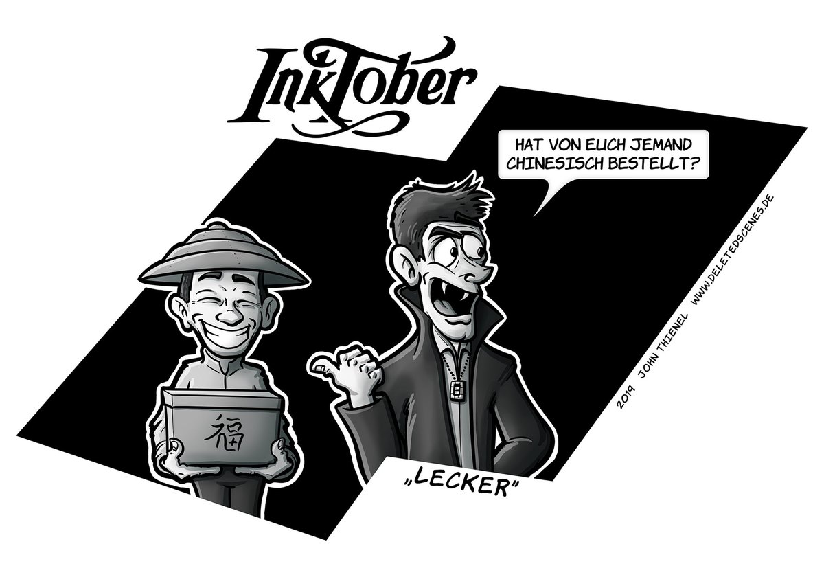 John Thienel Inktober 25 Lecker Nummel 47 Susssauel Inktober19 Competition Challenge Tasty Lecker Chinesisch Bringdienst Vampir Humor Schwarzerhumor Essen Cartoon Comic Webcomic Deletedscenes Johnthienel