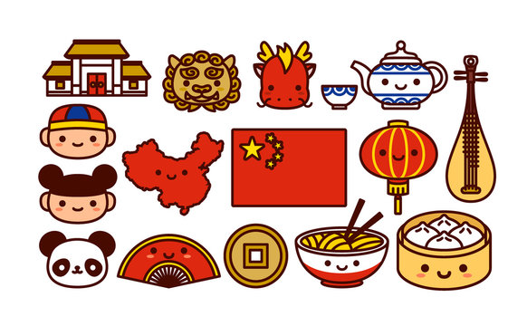 Poster Cartoon Chinesisches Essen Icon Set Pixers Wir Leben Um Zu Verandern