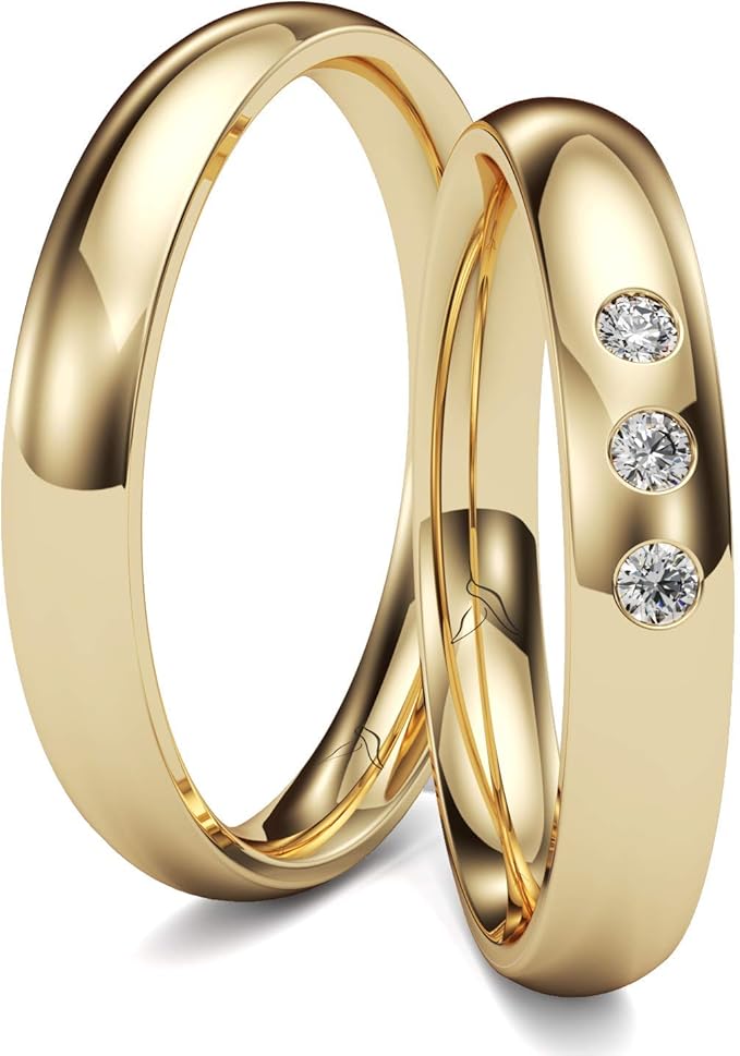 Kolibri Rings Gold Paarpreis Eheringe Gold 333 Massiv Mit 3 Diamanten 3 5mm Breit 1 5mm Stark Trauringe Verlobungsringe Partnerringe 100 Made In Germany Inkl Gratis Etui Gravur Zertifikat Amazon De Bekleidung
