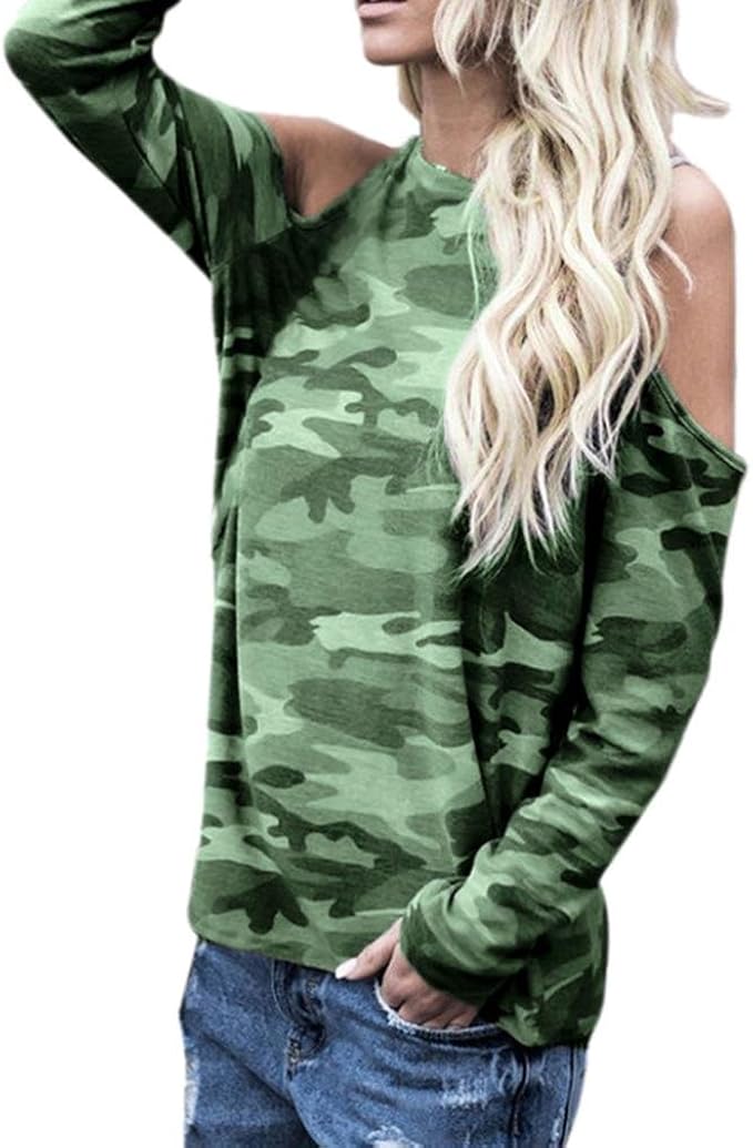 Jutoo Frauen Schulterfrei Camouflage Langarm Bluse Tops T Shirt Amazon De Bekleidung