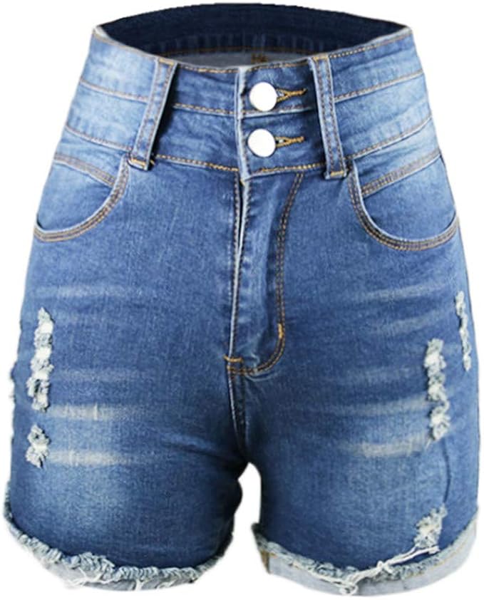 Skkg Damen Shorts Blaue Jeans Bermuda Mit Destroyed Parts Im Boyfriend Style Damen Mittlerer Aufstieg Kurze Hose Strecken Zerrissen Roher Saum Denim Kurze Jeans Amazon De Bekleidung
