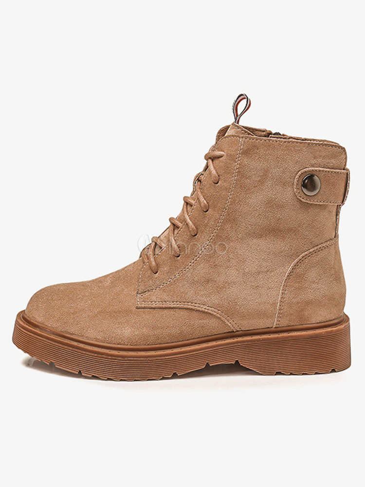 Damen Stiefeletten Wildleder Braun Round Toe Lace Up Martin Stiefel Milanoo Com