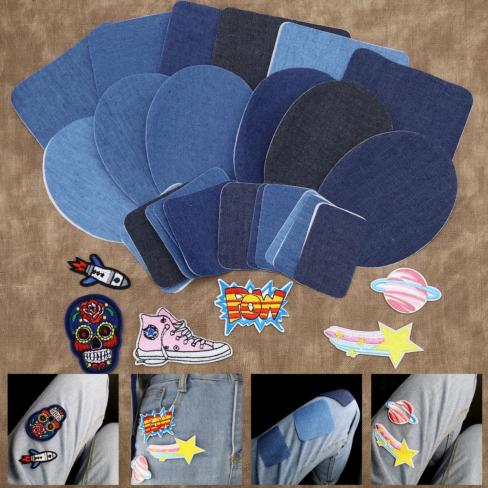 24x Aufnaher Denim Stoff Aufkleber Tuchaufkleber Mit 6 Gestickten Aufklebern Ebay