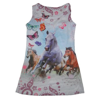 Madchen Kinder Sommerkleid Kleider Tunika Shirt Schimmel Pferd Pferde Kleid Neu Ebay