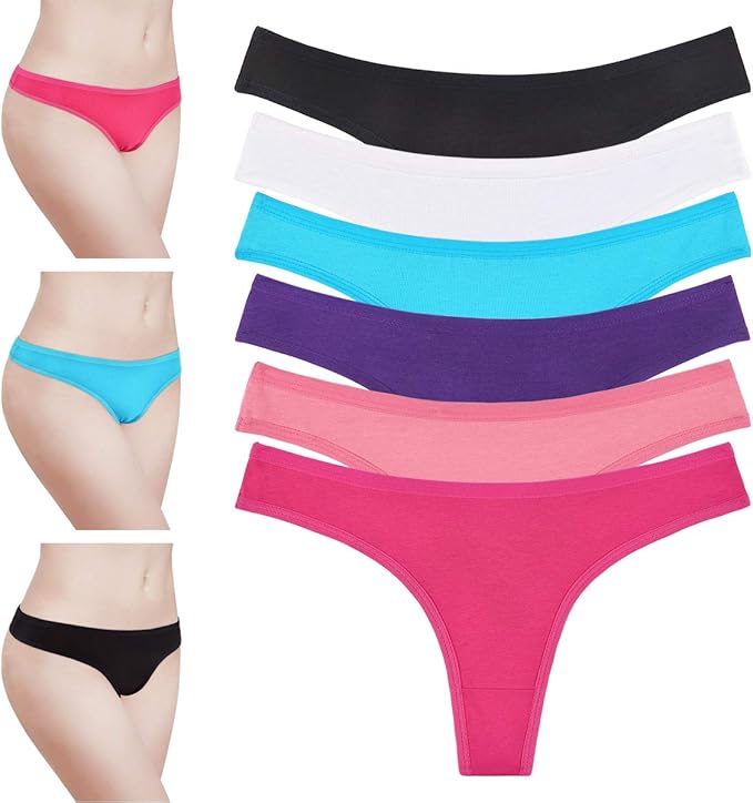Sunm Boutique 6er Pack Damen Baumwolle Tanga Panties Slip Ultra Soft Unterhose Sehr Bequeme Unterwasche Bekleidung Damen