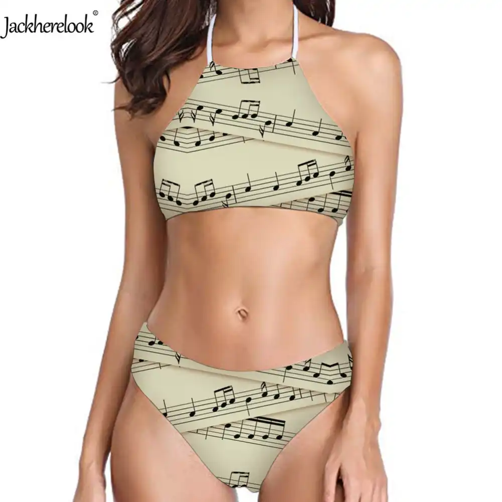 Jackherelook Sexy Beige Women Bikinis Set Sheet Music Design Halter Bandage Swimsuit Female Monokini Push Up Swimwear High Waist Bikini Set Aliexpress