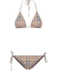 Burberry Beige Multicolor Classic Check Triangle Top Bikini Mid Length Bikinis Triangle Bikini Top Burberry