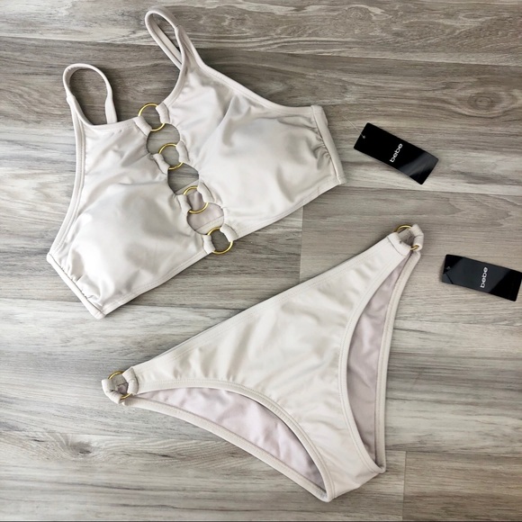Bebe Swim Bebe Beige And Gold Rings Bikini Set Poshmark
