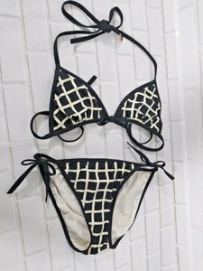 Kate Spade Bikini Set Top Button Size Xs Print Black Beige Removable Padding Ebay