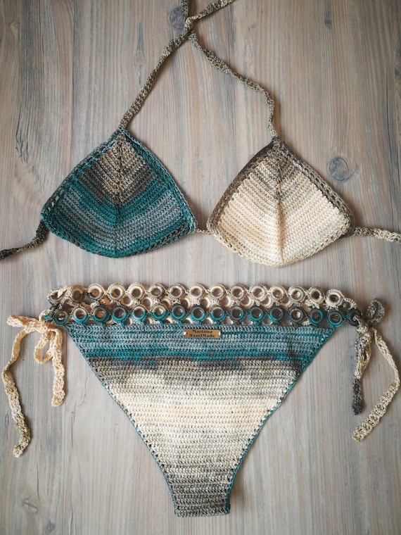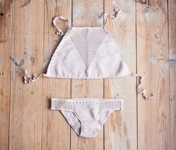 Crochet Bikini Set Beige Bathing Suit Crochet Swimsuit Etsy