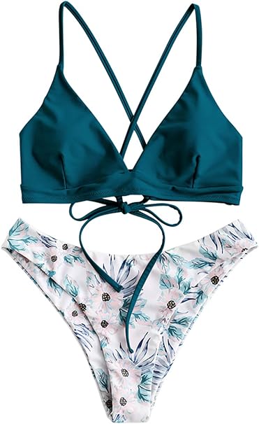 Zaful Damen Spaghetti Trager Push Up Criss Kreuz Floral Bikini Set Badeanzug Amazon De Bekleidung