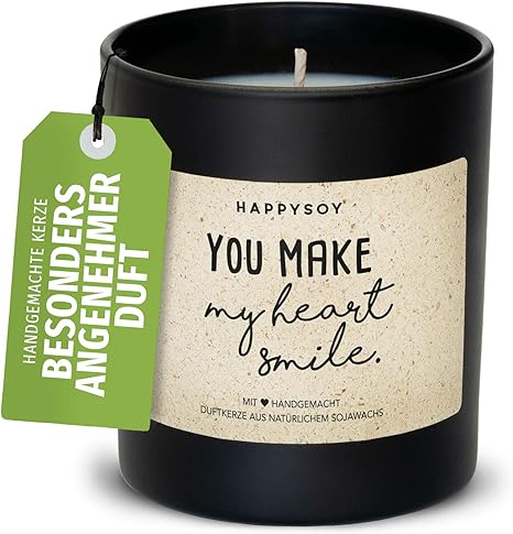 Happysoy Liebevolle Duftkerze Im Glas Mit Spruch Handgemacht Nachhaltiges Personliches Geschenk Schone Geschenkidee Beste Freundin Freund You Make My Heart Smile Amazon De Kuche Haushalt