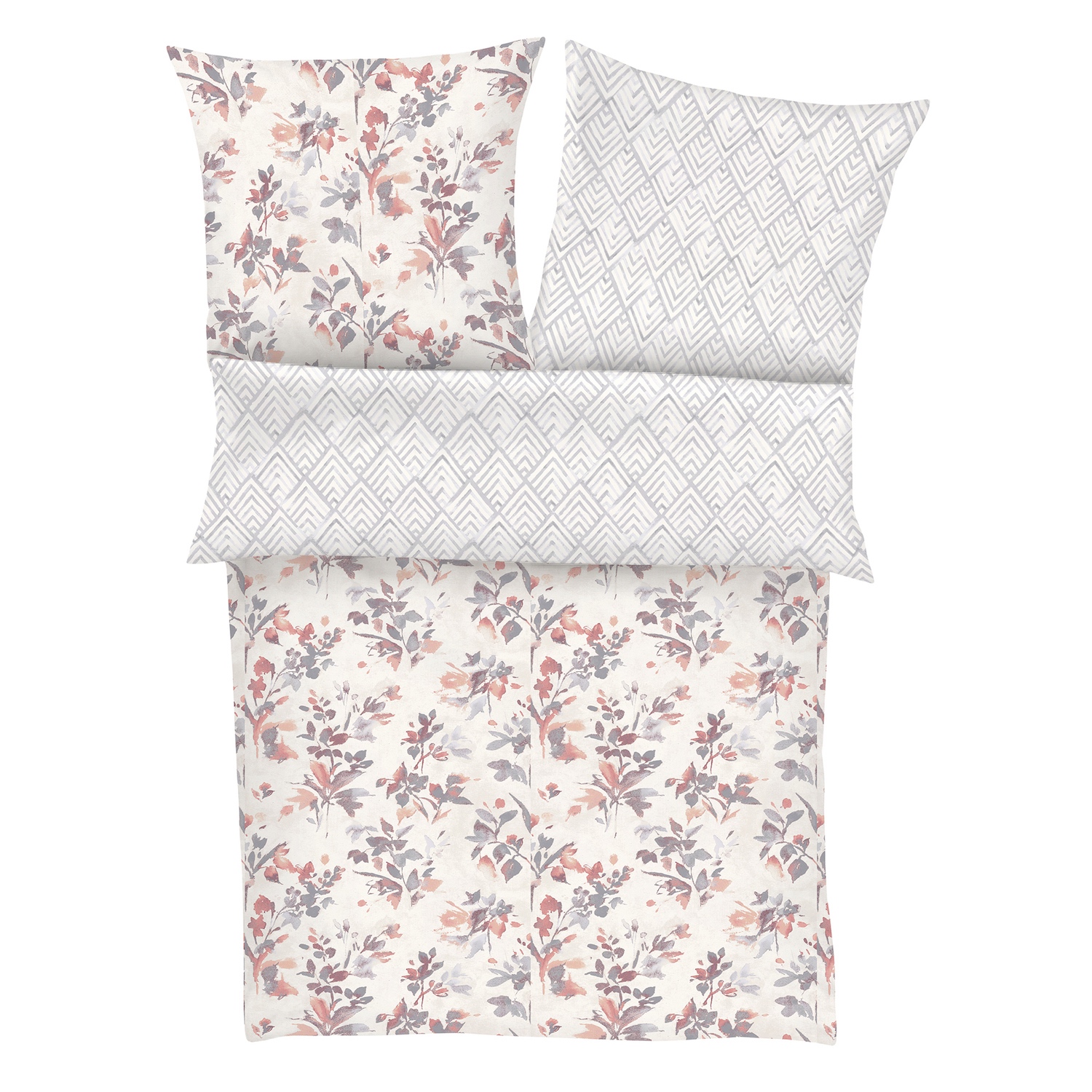 Bettwasche 135x0 80x80 Cm Rosa Grau Geblumt 100 Baumwolle Biber Mit Reissverschluss Leonado Vicenti