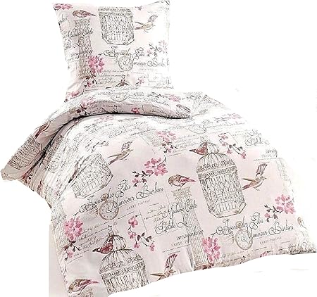 Optima 4 Teilige Bettwasche Set Mikrofaser Bettbezug 135x0 Kissenbezug 80x80 Creme Rosa Geblumt Vogel Amazon De Kuche Haushalt