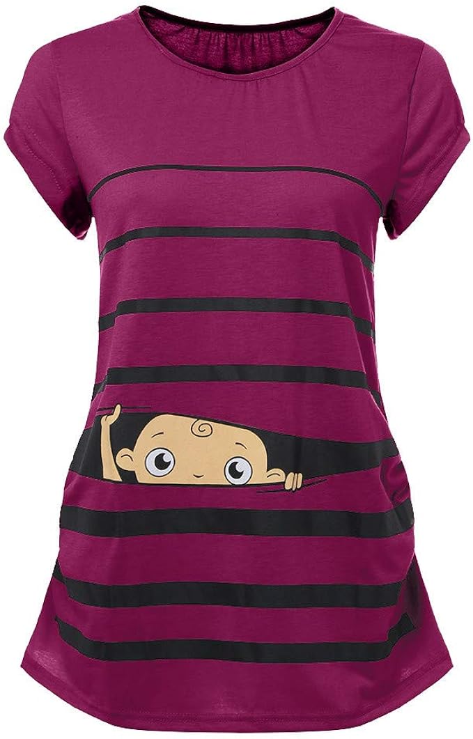 Schwangerschaft Sommer Umstandsmode Grosse Grossen Damen Mutterschaft Niedlich Baby Musterdruck Gestreift Kurzarm Lassig T Shirt Schwangere Tops Stillkleidung Umstandsmode Gunstig Amazon De Bekleidung