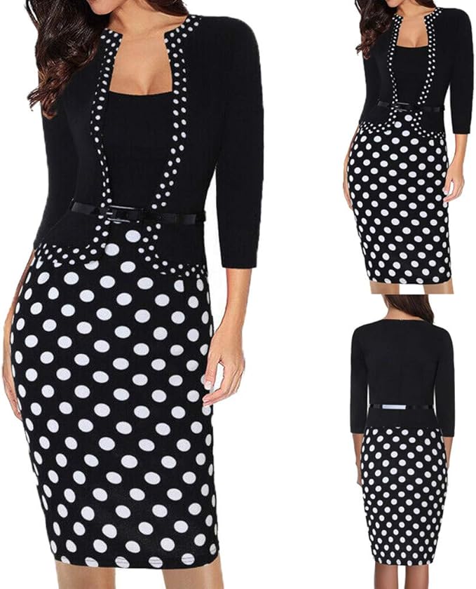 Shenye Elegante Damen Wave Punkt Kleid Business Buro Arbeit Formal Party Gurtel Bodycon Mantel Bleistift Kleid Business Bleistiftkleid Etuikleid Knielang Retro Etui Abendkleid Amazon De Bekleidung