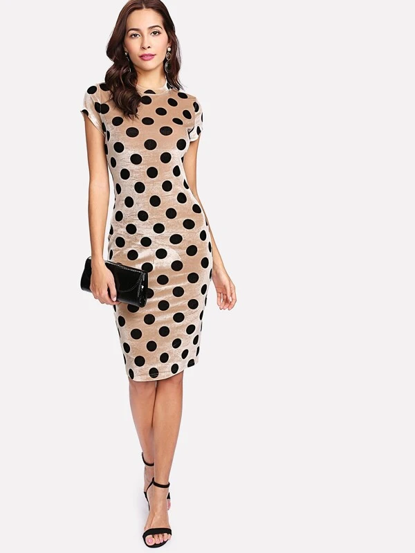 Samt Bleistift Kleid Mit Punkte Aktuelle Trends Gunstig Kaufen Shein Deutschland