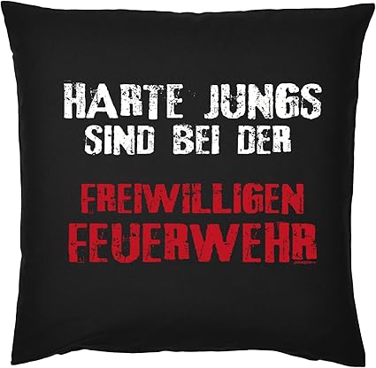 Titagu Deko Spass Kissen Inkl Fullung Rubrik Lustige Spruche Harte Jungs Sind Bei Der Freiwilligen Feuerwehr Amazon De Garten