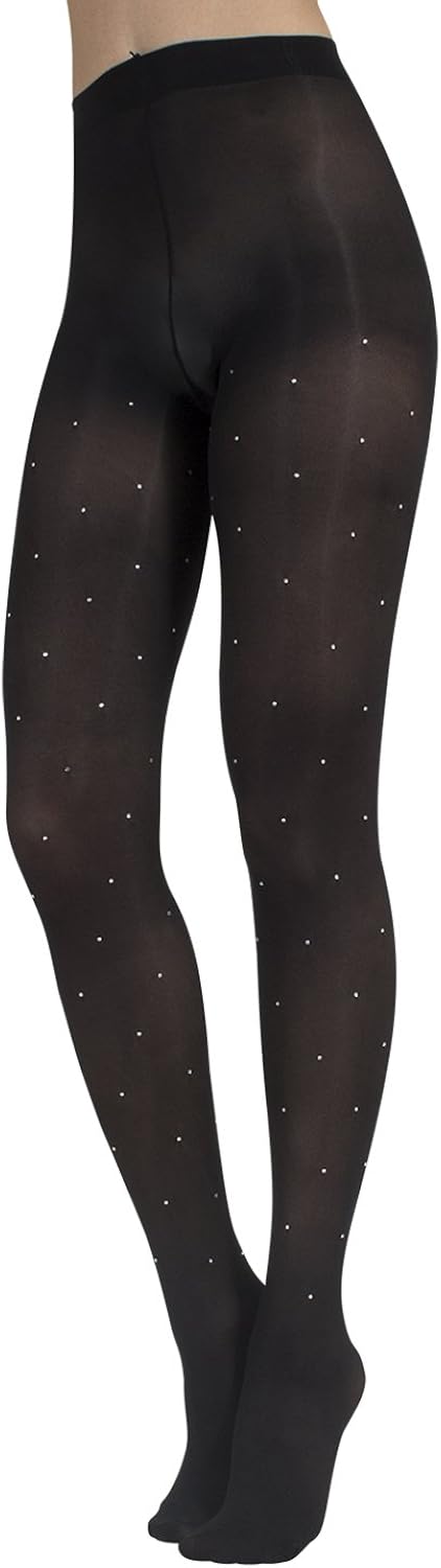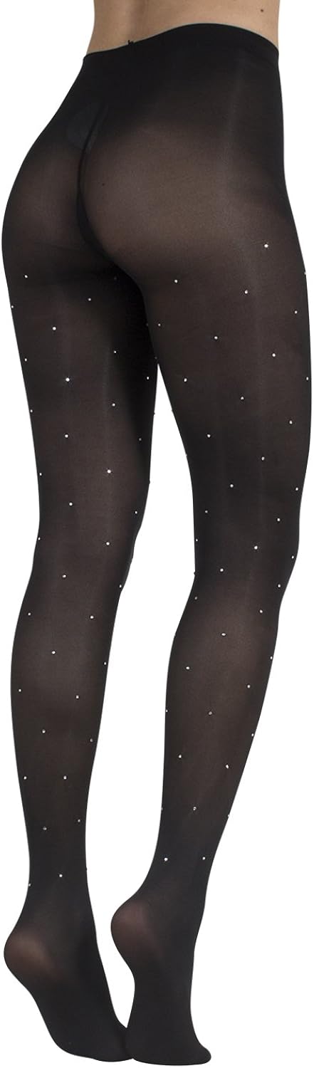 L Xl Calzitaly Blickdichte Strumpfhosen Mit Strass Diamanten Glitzer 40 Den S M Made In Italy Schwarz