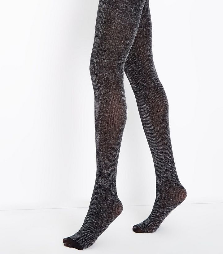 Schwarze Gerippte Strumpfhosen Im Glitzer Look New Look