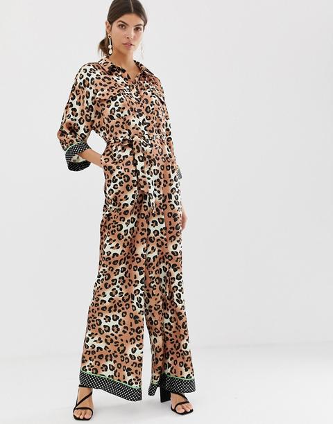 Liquorish Jumpsuit Mit Weitem Bein In Leopardenmuster Mit Kontrast In Neongrun Bedruckt From Asos On 21 Buttons