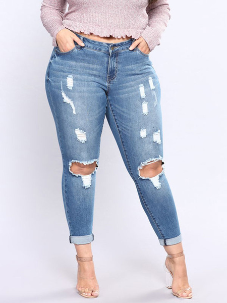 Women Ripped Jeans Distressed Shaping Denim Pants Power Day Sale