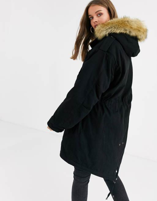 Vero Moda Parka With Faux Fur Hood In Black Asos