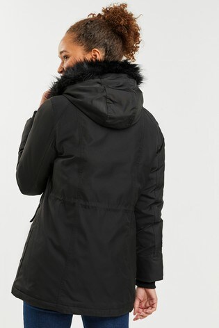 Schwarzer Parka Mit Abnehmbarem Kunstfellbesatz Dorothy Perkins